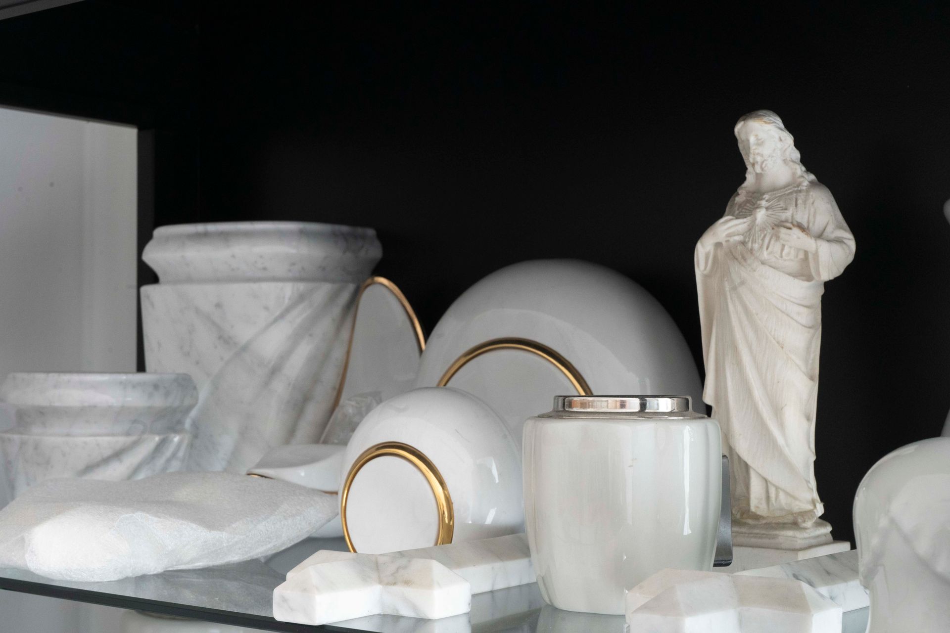 Accanto ai feretri, disponiamo di urne cinerarie realizzate in materiali differenti, tra cui legno, ceramica, metallo e vetro, con possibilità di decorazioni personalizzate. Collaboriamo con artigiani specializzati per offrire urne uniche, simbolo di affetto e memoria, capaci di custodire con rispetto e dignità le ceneri del caro estinto.