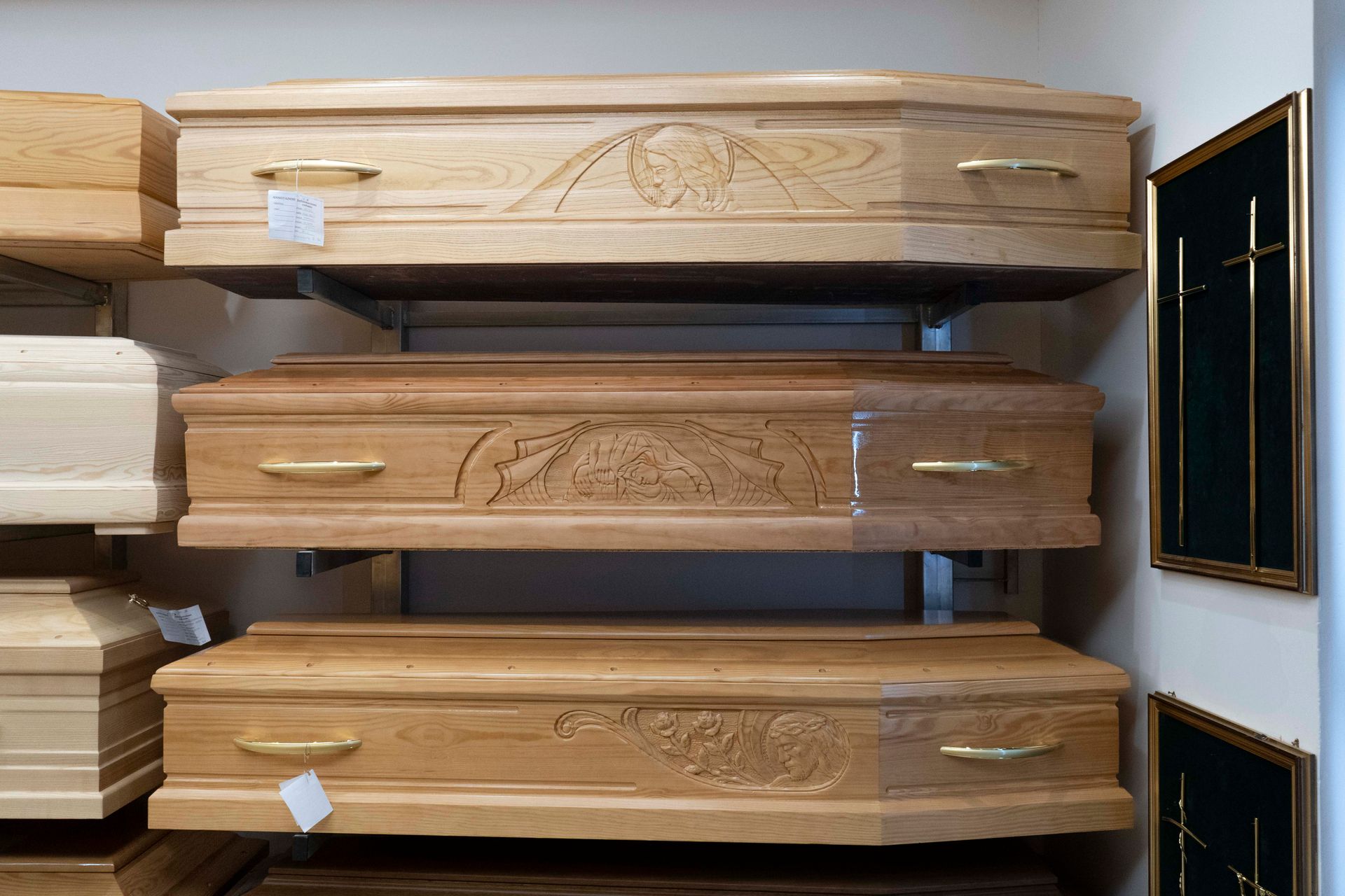 Siamo consapevoli che ogni rito funebre meriti la massima attenzione e personalizzazione. Per questo proponiamo una vasta scelta di bare e feretri, disponibili in diverse essenze di legno, finiture e stili, dalle linee più classiche a quelle contemporanee. Ogni feretro è lavorato con cura, utilizzando materiali pregiati e rispettando le tradizioni artigianali che garantiscono durata ed eleganza.